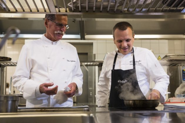 KALLA ÉS LITAUSZKI – Chef-legendák vacsorájával indult a Gundel 125. születésnapi éve! 2019. május 21-én egy estére visszatért a Gundelbe Kalla Kálmán Chef, hogy Litauszki Zsolt Executive Cheffel komponáljanak egy emlékezetes vacsorát. Az estén megkóstolhattunk néhányat Kalla Kálmán ma is méltán sikeres fogásai közül, amelyekhez a