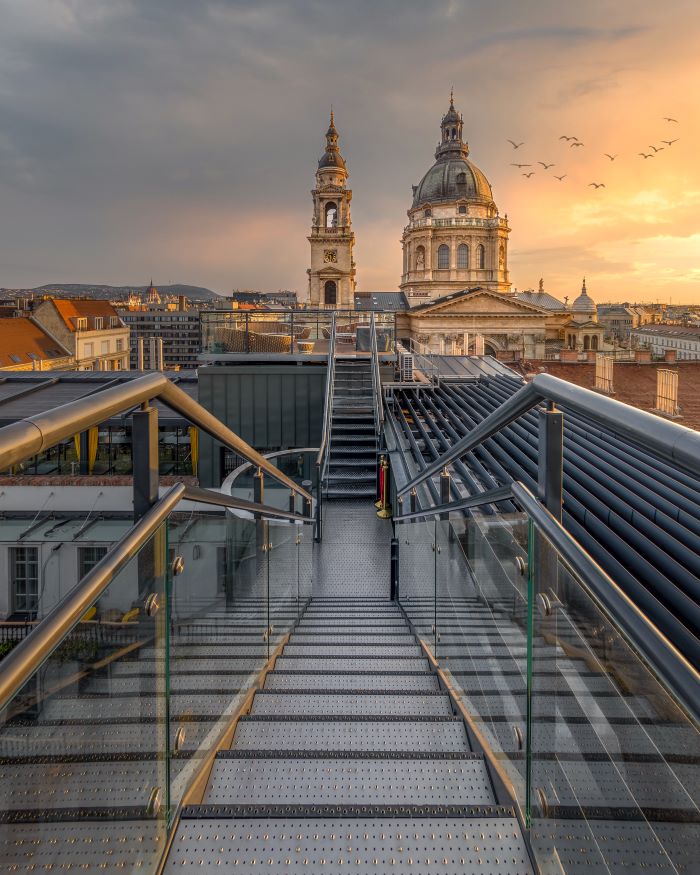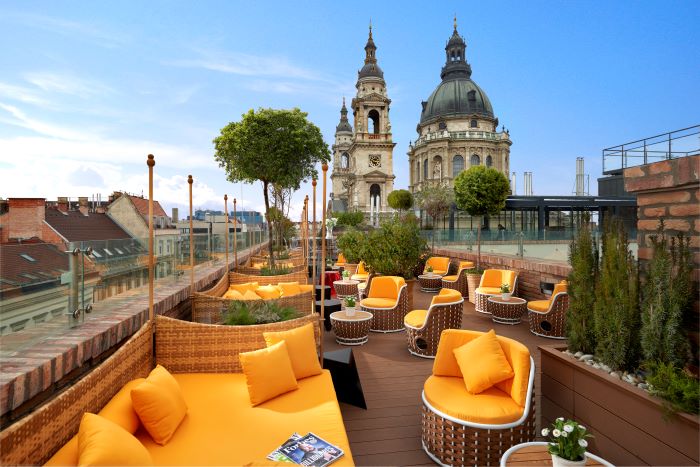 E kivételes elismerésekhez hozzájárult a szálloda ikonikus tetőterasza is, ahonnan a Szent István-bazilika kupolája közelről látható, és ezzel mára kihagyhatatlan budapesti desztinációvá vált. A jubileum alkalmából a szálloda legmagasabb pontján megnyílt a Sky Champagne Bar – Varró Zoltán belsőépítész látványos terve alapján.