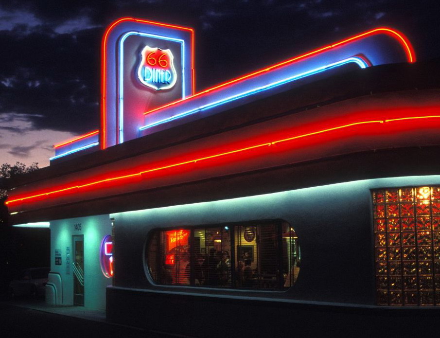 A ROUTE 66 DINER kivételesen nem csupán egy Diner. Akad belőle több is a legendás út mentén. A Diner az örökké úton lévő amerikai büféje. Lángos, pacal, babgulyás, hurka és kolbász helyett hamburger, sültkrumpli, hagymakarika, steak, cheesecake (sajttorta), s más ízletes és laktató ételek szerepelnek ezeknek a Dinereknek a választékában. A Diner stílus, s ma már egy nagy adag nosztalgia is, ami Európát, s Ázsiát is megérintette.