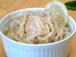 SZÓJACSÍRA SPAGETTI – A különféle babcsírák a Kelet-ázsiai konyhák elterjedt alapanyagai. A mungobab csírája mellett a nagyobb szójabab csíra a legnépszerűbb. A csírák nagyjából egy hét alatt lesznek felhasználásra alkalmas méretűek. A szójacsíra is jóval egészségesebb és táplálóbb, mint a szója maga, emellett az elkészítése alig igényel energiát. Rizsbe, tavaszi tekercsbe, levesekbe, és más