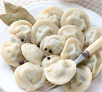 A PELMENYI az orosz konyha kedvelt étele. Vékony, kelesztetlen tészta, megtöltve, kifőzve. Kínában és Olaszországban is találunk ilyeneket és szerte a világon, ám a pelmenyi az pelmenyi marad, ha másért nem, azért, mert ezt cirill betűvel írják. A tészta a legegyszerűbben, lisztből, vízzel összegyúrva készül. Néha közé keveredik a tojás is, ahogy mindenfelé, ahol valamivel jobban élnek. Klasszikus tölteléke darált húsból áll. Udmurtföldön marha, birka és