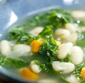 TOSZKÁN BABLEVES – Ehhez a toszkán leveshez 4 személyre a következők szükségesek: 1 evőkanál (15 ml) extra-szűz olívaolaj, 1 hagyma, finomra vágva, 4 gerezd zúzott fokhagyma, 1 sárgarépa, felvágva, 1 aprított zeller szár, 1 teáskanál szárított zsálya, morzsolva, 6 csésze (1,5 liter) csirkehúsleves, 2 doboz fehér májbab, vagy Romano bab, amelynek öntsük le a levét és csöpögtessük le, 4 csésze (1 liter) aprított fodroskelt, só és bors. Az elkészítéséhez egy nagy edényben, közepes lángon hevítsük fel az olívaolajat.