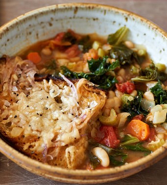 RIBOLLITA TOSCANA – A toszkánok olyanok Olaszországban, mint nálunk a babtermesztő soproni poncichterek, arról nevezetesek, hogy konyhájukban a bab előkelő szerepet tölt be. Nos, Toszkána sokat magasztalt, egyszerű paraszti konyhájában a bab hagyományosan előkelő helyen áll a hozzávalók listáján. A kenyérrel gazdagított, sűrített ribollita eredete a középkorig nyúlik vissza és a leves egyfajta újrahasznosításnak is tekinthető. Egyes vélemények szerint a zöldséges levesek (minestrone) másnapi újramelegítésével, amire a leves neve