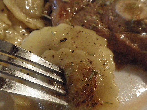 AUSZTRIÁBAN vettem két szelet báránycsülköt (Lammkeule), úgy 1-1,5 cm vastagot, amilyen volt. A vargányás tortelli is onnan származott, aztán úgy gondoltam, hogy a kettő remek kombinációja lesz az ebéd. Egyébként is kedvelem a tészta, hús párosításokat, s ez ráadásul gyorsan el is készíthető. A húst olíva olajjal vékonyan bekentem, Maldon sóval sóztam és így tettem a felforrósított serpenyőbe.